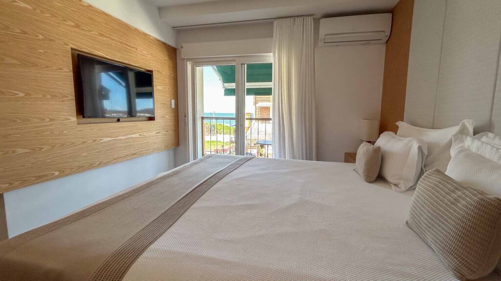 Outro destaque na nossa lista é o Hotel Villa D’Ozio, e ele se diferencia pelo conceito exclusivo e por ser um dos poucos hotéis de frente para a Praia Brava. Isso mesmo, é só atravessar a rua e você está na areia da praia.